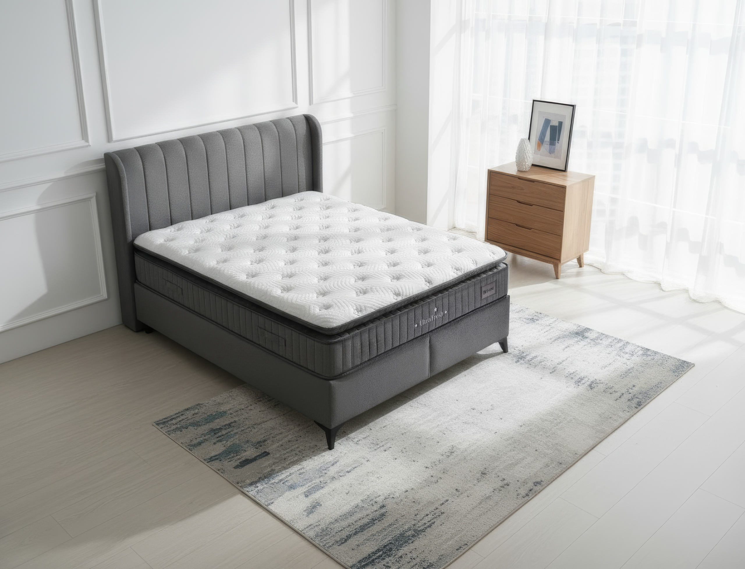 Ultra Fresh Çift Kişilik Yatak & Baza & Başlık Seti, doğallık ve yenilikçi teknolojiyi bir araya getirerek ferah, sağlıklı ve konforlu bir uyku ortamı sunar. Himalaya tuzu katkılı özel sünger yapısı sayesinde negatif iyon yayılımı sağlar, hava kalitesini artırır ve gece boyunca rahat bir uyku atmosferi oluşturur. Bu benzersiz teknoloji, elektromanyetik radyasyonun etkilerini azaltarak stres ve yorgunluğun giderilmesine yardımcı olur.