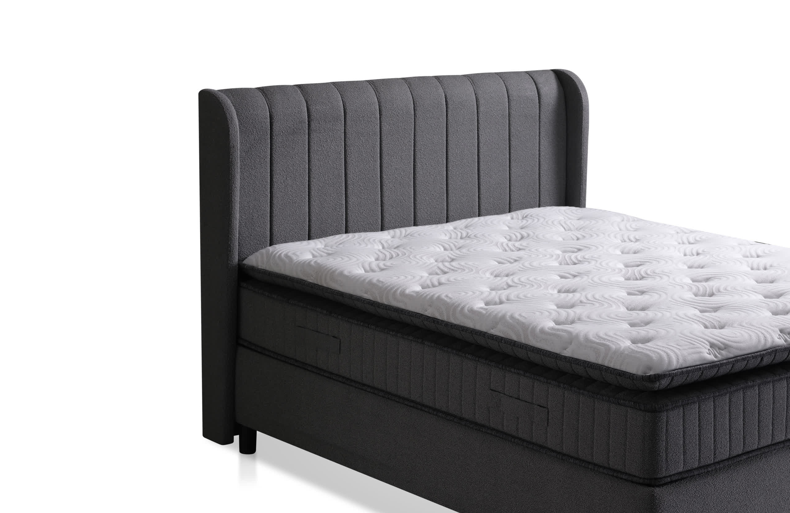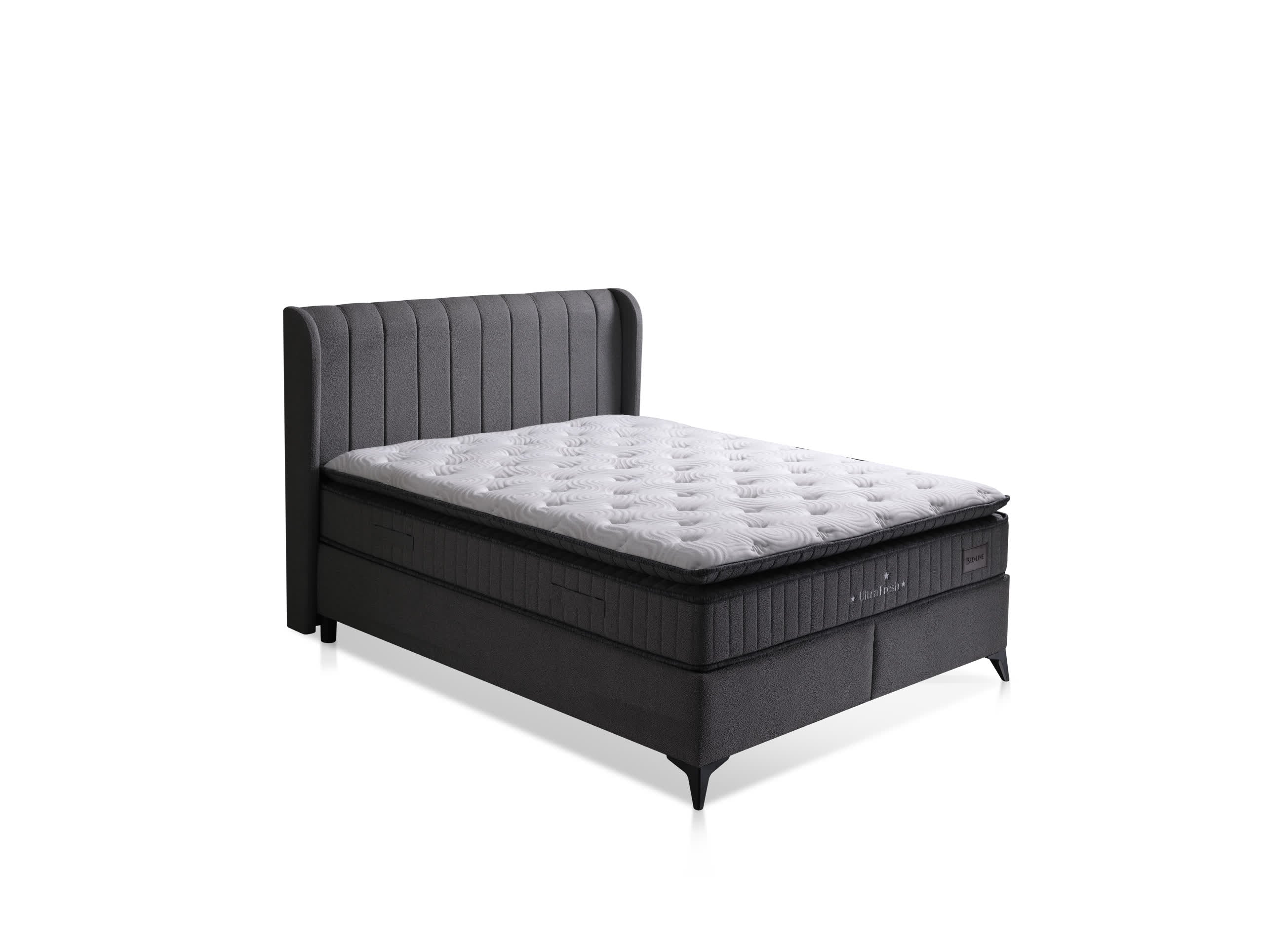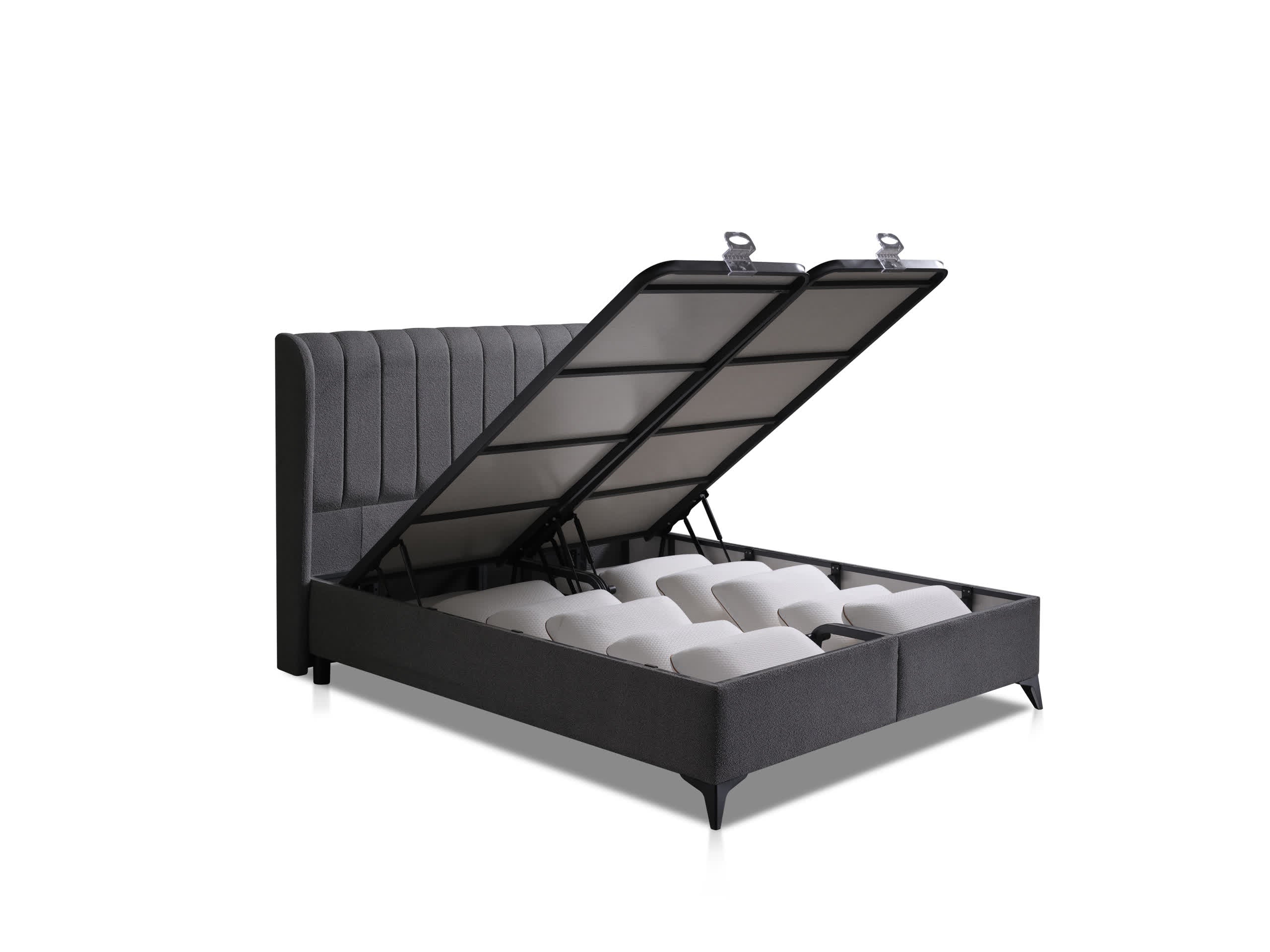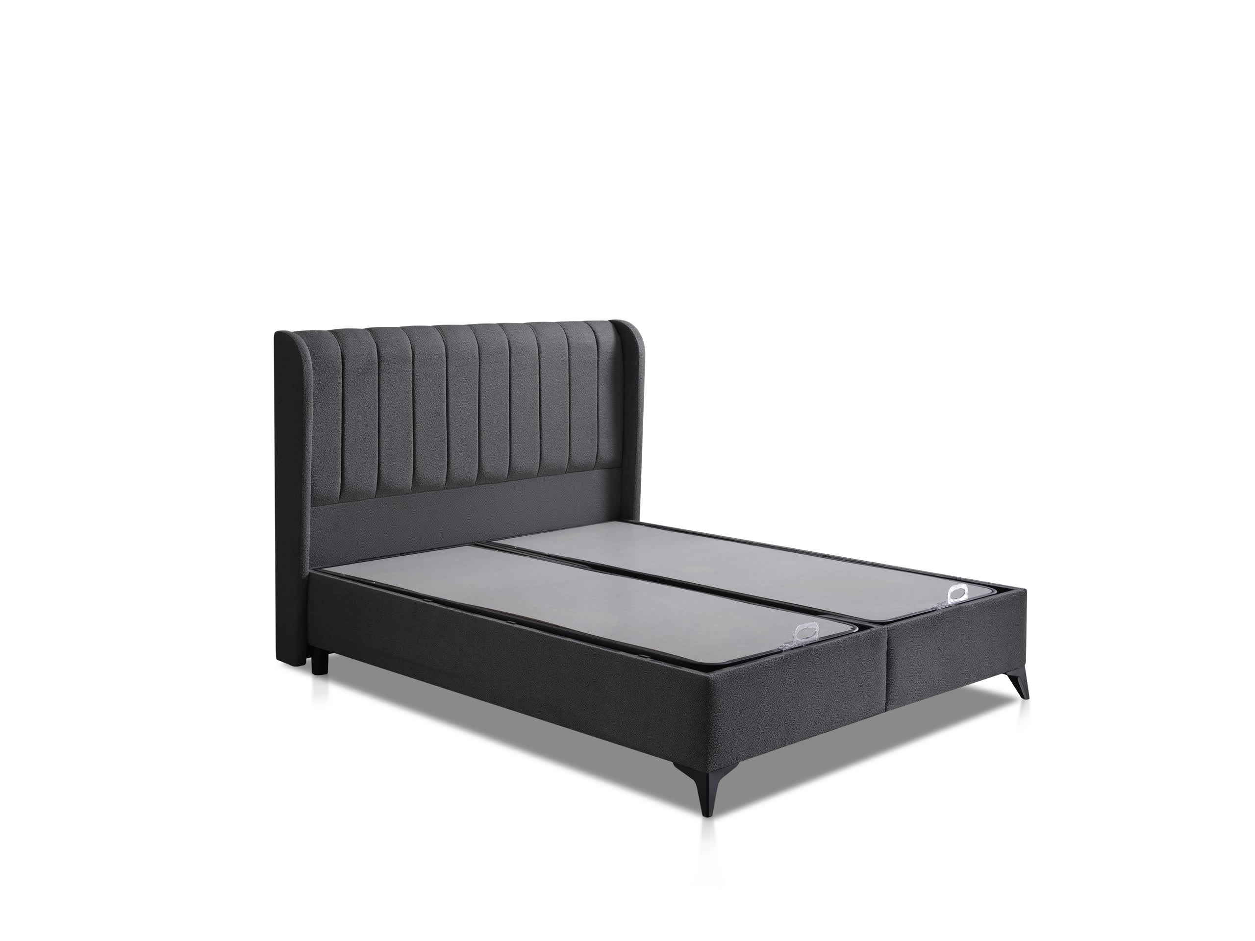 Setin bir parçası olan geniş sandıklı baza, eşyalarınız için pratik bir depolama alanı sunar. Modern başlık tasarımı yatak odanıza zarif bir görünüm kazandırırken, robot süpürge uyumlu yüksek ayak yapısı temizlikte kolaylık sağlar.